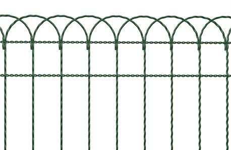 Ornaplast è una rete metallica ornamentale con maglia mm 85x150H realizzata con filo zincato a caldo e plastificato per estrusione con un forte strato di PVC color verde RAL 6005.